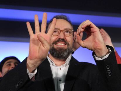 El cap de llista, Gabriel Rufián, es posa transcendent per anunciar que ERC ha triplicat els resultats