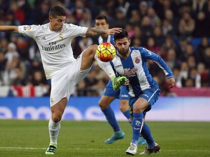 El colombiano, que no marcaba desde octubre, anota el tercer gol del Madrid y da el pase del primero