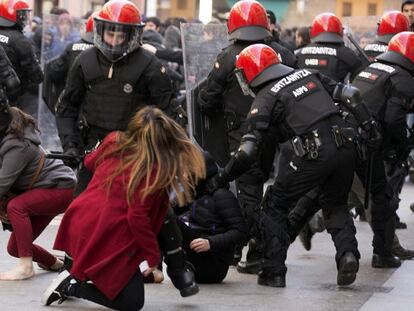 La jornada de "lucha" convocada por Ikasle Abertzaleak se salda con daños en la universidad y en comercios y bancos de Vitoria