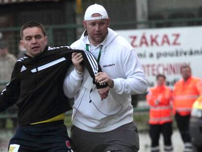 Su evidente lucha para mantenerse en pie provocó que un guardia de seguridad lo sacara de la banda