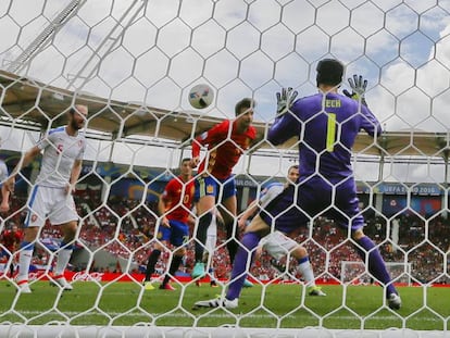 Guiada pel genial migcampista, una bona Espanya tomba el mur txec amb un gol de Piqué en els últims minuts (1-0)