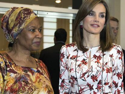 La Reina combina a su modisto de cabecera, Felipe Varela, con otras firmas como Carolina Herrera