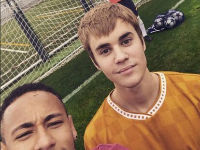 El cantant s'ha fet un 'selfie' amb Neymar i Rafinha la vigília del seu concert a Barcelona