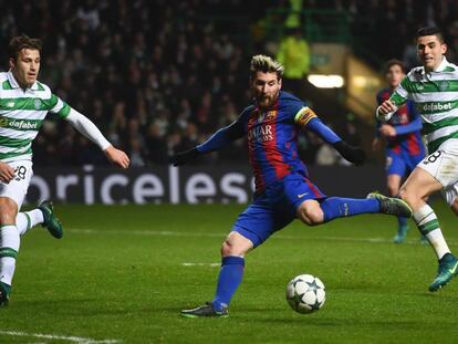 El delantero argentino desmonta al Celtic y suma la cifra récord de 100 goles en torneos internacionales con el Barça