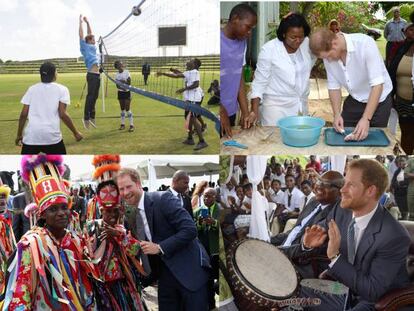 En tan solo cuatro días de viaje oficial, Enrique de Inglaterra ha practicado deporte, ha plantado un árbol limpiado pescado, bailado y liberado tortugas