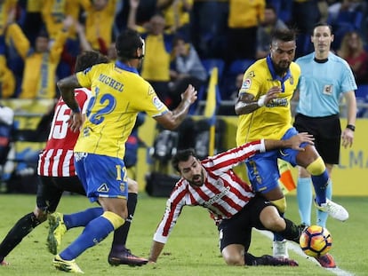 El equipo canario se adueña del balón ante un conjunto rojiblanco desorientado