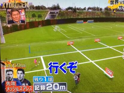 Las estrellas del Barça compitieron contra dos jugadores nipones para ver quién pasaba la pelota a más distancia sin tocar el suelo