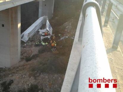 Ferit greu el conductor d’un camió en caure per un pont a la Bisbal del Penedès