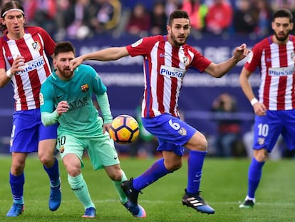 El conjunto azulgrana derrota 1-2 al Atlético con goles de Rafinha y Messi, Godín marcó para el cuadro de Simeone