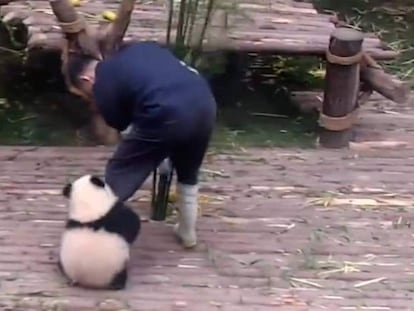 Un vídeo en el que el oso da volteretas y se aferra a la pierna de sus cuidadores para llamar su atención logra más de 180 millones de reproducciones