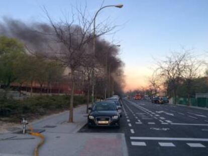Una máquina elevadora de las obras de la línea 8 de Metro provocó una gran columna de humo. Un trabajador tuvo que ser atendido por inhalación de gases
