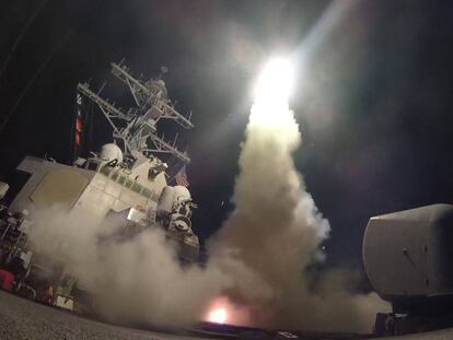 Estados Unidos lanza 59 misiles de crucero contra un campo aéreo sirio como represalia por el ataque químico. Es la primera intervención directa de Washington contra el régimen de Bachar el Asad
