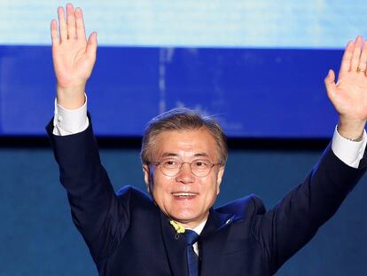 Los sondeos a pie de urna otorgan a Moon Jae-in el 41,4% de los votos, frente al 23,3% de su rival conservador