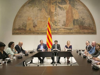 El presidente de la Generalitat, Carles Puigdemont, se reúne con el resto de formaciones independentistas