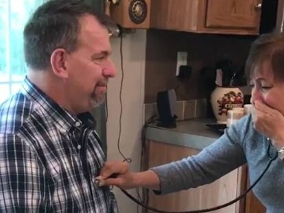 La madre del donante se emociona al oír los latidos junto al hombre, en Carolina del Norte, EE UU