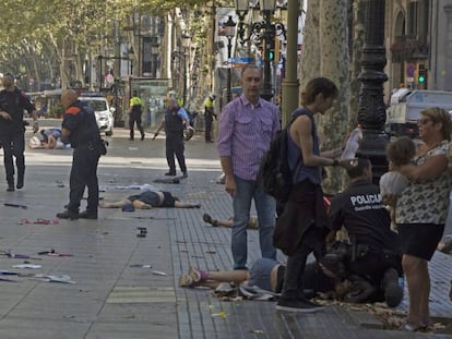 Trece muertos y un centenar de heridos en un atropello masivo en el corazón de la capital catalana