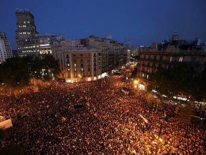 Milers de persones es manifesten davant de la seu del Departament d'Economia