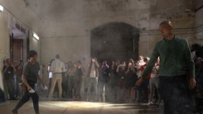El artista chino Cai Guo-Qiang crea sus obras en el Salón de Reinos para una futura exposición