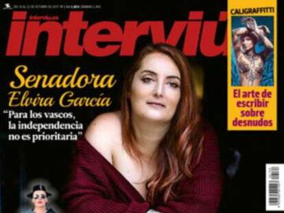 Es la primera parlamentaria de la democracia que aparece así en la revista, envuelta en la bandera de Álava
