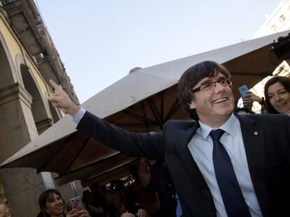 El expresidente de la Generalitat de Cataluña Carles Puigdemont ha sido recibido este sábado con vítores y aplausos paseando por las calles del centro de Girona, ciudad de la que fue alcalde entre 2011 y 2016