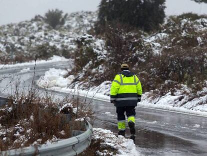 Las bajas temperaturas han llegado también a Tenerife. La zona de Izaña, en el parque nacional donde se ubica el volcán, amaneció este lunes cubierto de una capa de hielo