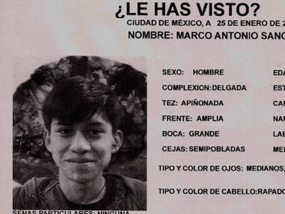 Marco Antonio Sánchez, de 17 años, desapareció el martes pasado tras ser detenido por la policía, en su última foto aparece maniatado por un agente al norte de la Ciudad de México