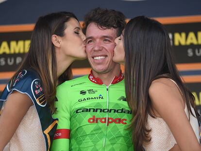 El subcampeón del Tour de Francia en 2017, Rigoberto Urán, enciende la polémica por el trato a una de las azafatas que le entregó su tercer premio en una carrera.