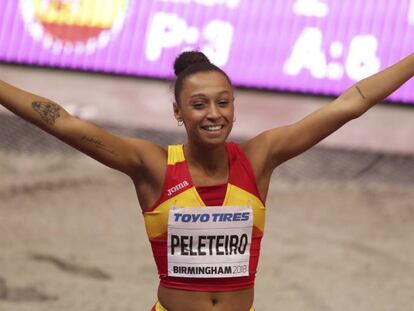 La gallega consiguió con 22 años un hito histórico en el atletismo español al conseguir la primera medalla -bronce- en unos Mundiales en pista cubierta con el mejor salto de su vida 14,40 metros