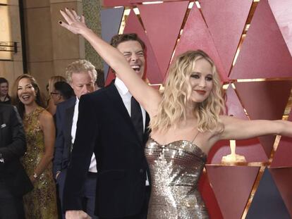 La actriz apareció en la fiesta de 'Vanity Fair' con el lema Time’s Up grabado en el brazo