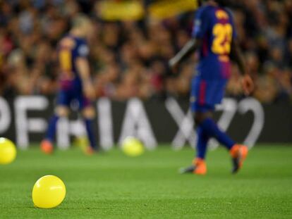 El árbitro del partido ante el Roma detuvo el juego unos instantes cuando varios globos amarillos volaron sobre el césped
