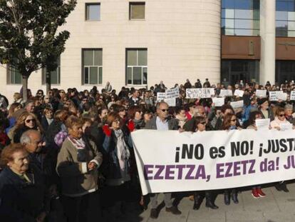 Tensión a las puertas de la Audiencia Provincial, donde las manifestantes gritan "esta justicia es una mierda", "no es abuso, es violación" o "si tocan a una nos tocan a todas"