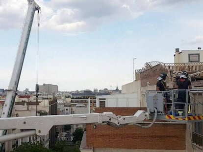 Los bomberos desmontan la cubierta del inmueble para evitar nuevos desprendimientos y acelerar la búsqueda
