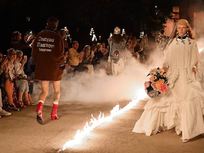 400 invitados volaron hasta Arles (Francia) para ver un show al aire libre en el que Michele desprendió toda su barroquista artillería: una novia fantasma, «viudas visitando cementerios, chavales imitando a estrellas del rock y señoritas que no son señoritas».