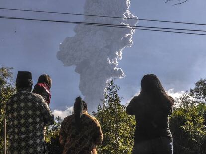 La emisión provoca una columna de ceniza de seis kilómetros de altura y quema bosques cercanos
