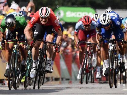 Segunda victoria en el Tour del ciclista colombiano, que supera a Sagan y a Greipel en la recta de Sarzeau
