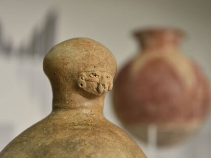 Los objetos exhibidos forman parte de una colección de 13 objetos arqueológicos robados por un profesor alemán y que fueron recuperados en Europa cuando una casa de subastas estaba a punto de venderlas al mejor postor. Después de una batalla legal de seis años han sido repatriadas a su país de origen.