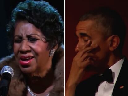 El expresidente estadounidense, fan confeso de la artista fallecida, se secaba las lágrimas durante su actuación en el Kennedy Center Honors en 2015.