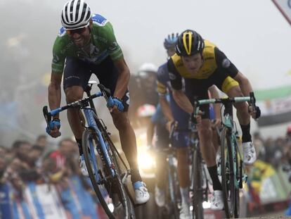 Victoria de Pinot en Covadonga, donde el murciano ayuda a Nairo a resistir los ataques del líder Yates y 'Supermán' López