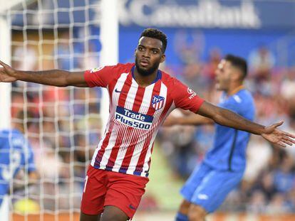 El francés da la victoria al Atlético en Getafe y firma su primera gran tarde como rojiblanco con un cañonazo que entró tras dar en la espalda de Soria y un gol a la contra