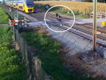 El hombre consiguió acelerar milésimas de segundo antes de que pasara el convoy