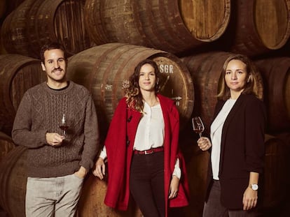 Rocío Osborne, sexta generación de la familia bodeguera, muestra a los luthiers María y Felipe Conde los apasionantes nexos de unión de los oficios artesanales que han heredado a través de la actualización del brandy Carlos I