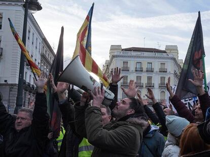 Tras concentrarse en la Puerta del Sol los taxistas han repetido su protesta en la calle Goya para pedir al Gobierno regional mayor regulación en los VTC