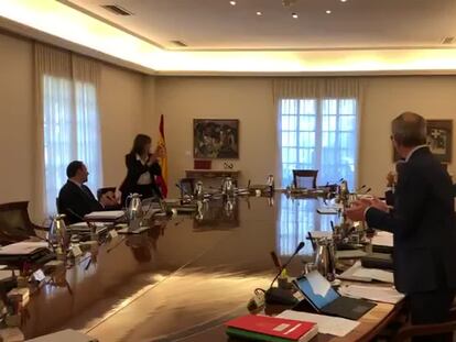 Los ministros se encontraban reunidos mientras el presidente hacía su discurso institucional