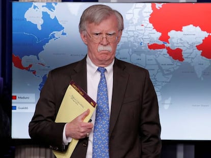 John Bolton, consejero de Seguridad del presidente Donald Trump, hace un llamamiento a las Fuerzas Armadas de Venezuela, que han bloqueado el paso de la ayuda humanitaria