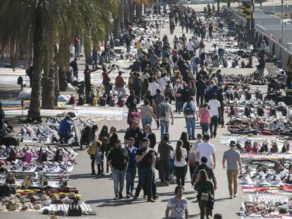 Els manters de la plaça Catalunya es distribueixen per tota la ciutat durant el Mobile