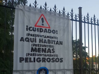 Hogar Social, organización ultraderechista, ha detallado a través de la red social que los carteles se han colgado en los centros de Hortaleza y Casa de Campo