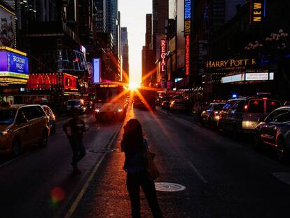 Este fenómeno ocurre dos veces al año en la Gran Manzana y toma el nombre basándose en el mismo efecto que se da entre las piedras monolíticas del yacimiento prehistórico británico de Stonenghe