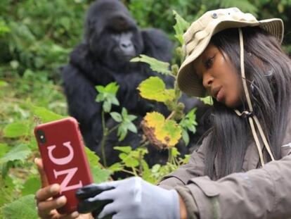 La modelo británica ha viajado al país africano para participar en varios proyectos solidarios y poner nombre a un bebé primate