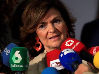 Carmen Calvo marca distancias con el líder de Podemos sobre la crisis catalana: "Contemplamos de manera muy diferente lo que significa la división de poderes"