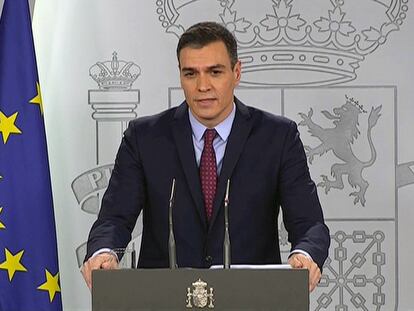 Las medidas por la crisis del coronavirus llevan al jefe del Ejecutivo, Pedro Sánchez, a comparecer en una sala completamente vacía